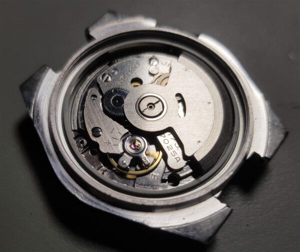 Das Werk dieser Uhr ist ein von Seiko entwickeltes und hergestelltes Seiko 7025. Die 7000er Werke von Seiko wurden 1969 eingeführt und waren damals eine echte Sensation. Mit einem fantastisch effektiven Exzenter-Aufzug und kugelgelagertem Rotor ist die Automatik-Aufzugsleistung auch heute noch den typischen Schweizer Werken überlegen. Das Datum ist schnell verstellbar und der effektive Aufbau des Räderwerkes führt zu sehr langen Wartungsintervallen. Die 7000er Werkserie sind die Ahnherren der heute immer noch produzierten Seiko Werke der 6R und 4R Serien.